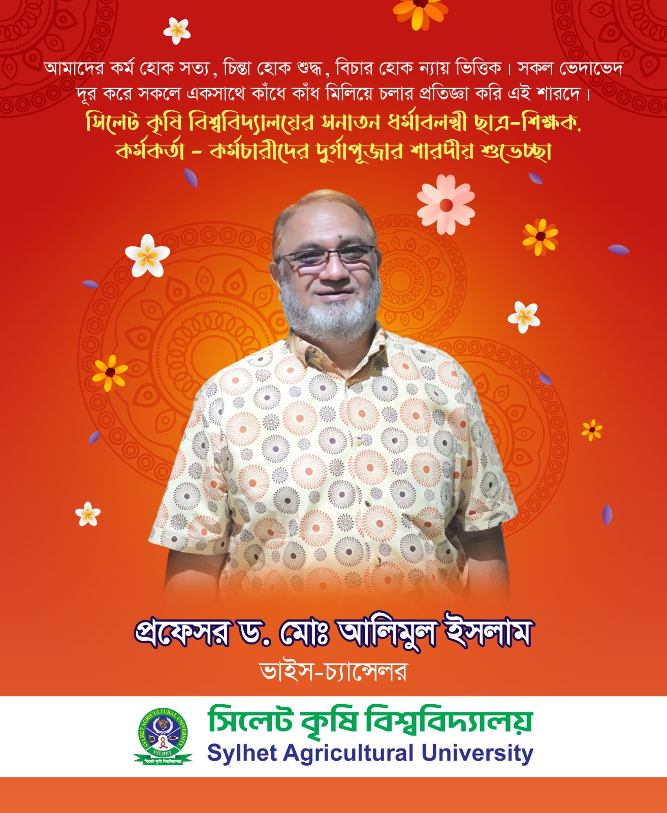 সনাতন ধর্মালম্বী ছাত্র-শিক্ষক, কর্মকর্তা- কর্মচারীদের দুর্গাপূজার শুভেচ্ছা জানিয়েছেন ভাইস চ্যান্সেলর প্রফেসর ড. মো: আলিমুল ইসলাম
